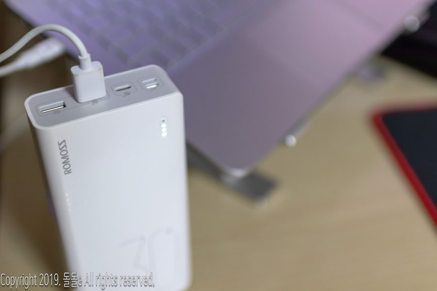 다른 보조배터리와 다르게 로모스30000의 구성품에는 별도의 케이블선이 동봉되어 있지 않기때문에, 기존에 사용하던 충전케이블을 사용해야 합니다.