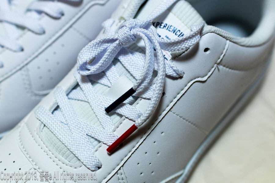 사진으로는 잘 표현되지 않았지만 일반 운동화 끈과 달리 커플 운동화 추천하는 흰색 운동화 아이더 샤토루의 운동화 끈은 검은색, 빨간색으로 양쪽 컬러가 다릅니다.