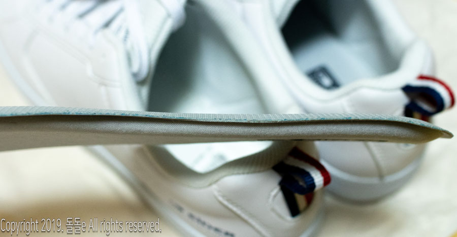 아이더 스니커즈 샤토루에 적용된 운동화 깔창은 메모리폼을 사용했기때문에 푹신하고, 편안한 착화감을 경험해볼 수 있습니다. 저렴한 스니커즈는 오래 신지 않아도 발이 불편해 빠른 시간에 발이 피로해지지만, 이 제품은 메모리폼 깔창 적용으로 장시간 신어도 타 스니커즈,운동화보다 발이 덜 피로해짐을 느낄 수 있었습니다.