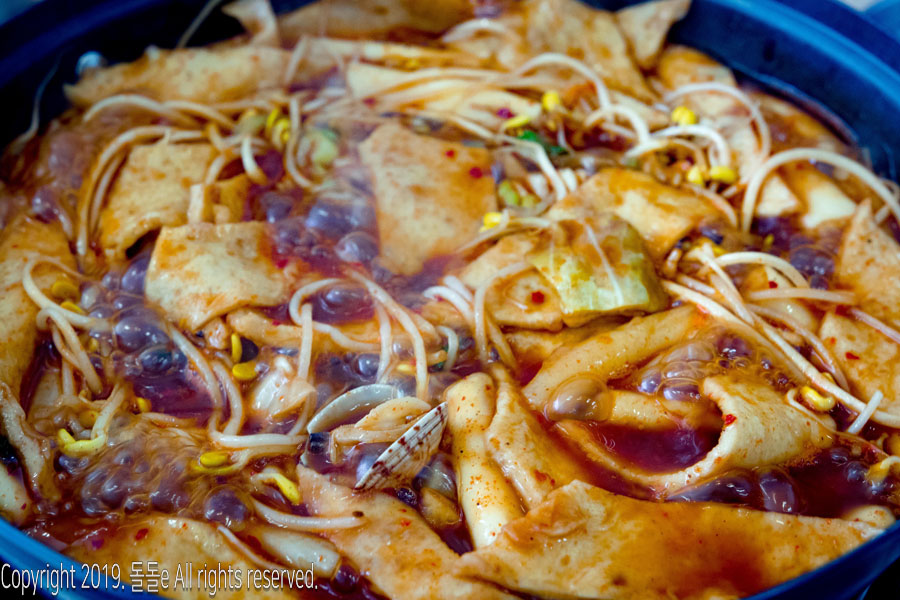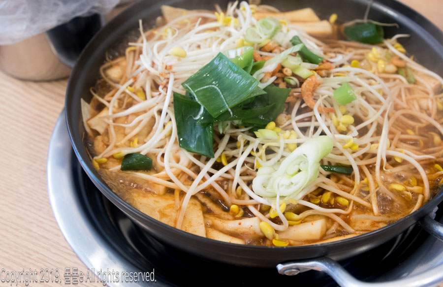 고양이부엌 반반소스는 기본 매운국물+짜장소스를 베이스로 한 국물떡볶이이고, 조개, 건새우, 콩나물이 많이 들어있고, 떡은 밀떡을 사용한 떡볶이입니다. 또한 조개, 건새우 그리고 많은 콩나물이 들어있어 국물이 시원하면서 깔끔한 맛이 일품입니다.