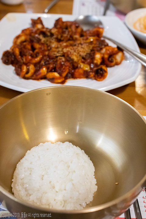 다른 식당과 달리 시흥 참소예의 쭈꾸미볶음에는 양파 등의 야채가 들어가 있지 않고, 매운 맛 조절은 불가한데, 그렇게 많이 맵지 않기때문에 매운 음식을 잘 못드시는 분들도 부담없이 식사할 수 있습니다.