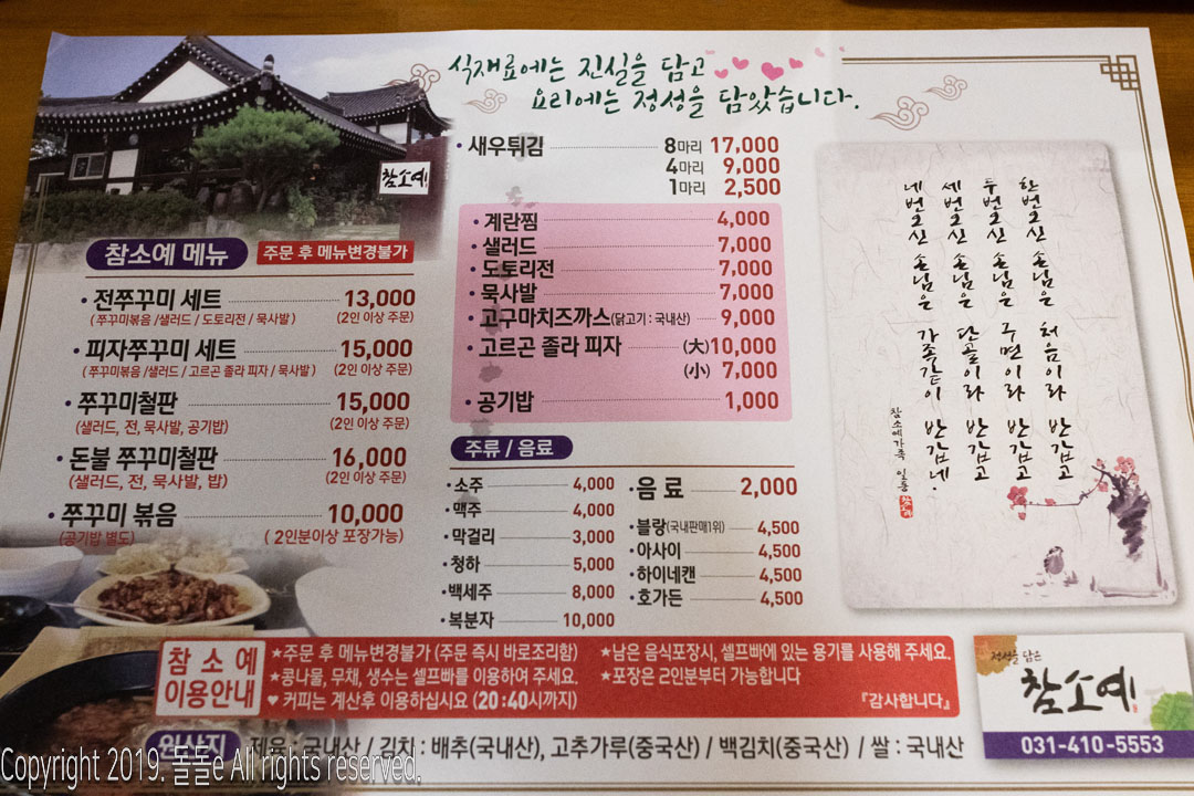 물왕저수지 쭈꾸미볶음 맛집으로 유명한 참소예에 다녀왔습니다.