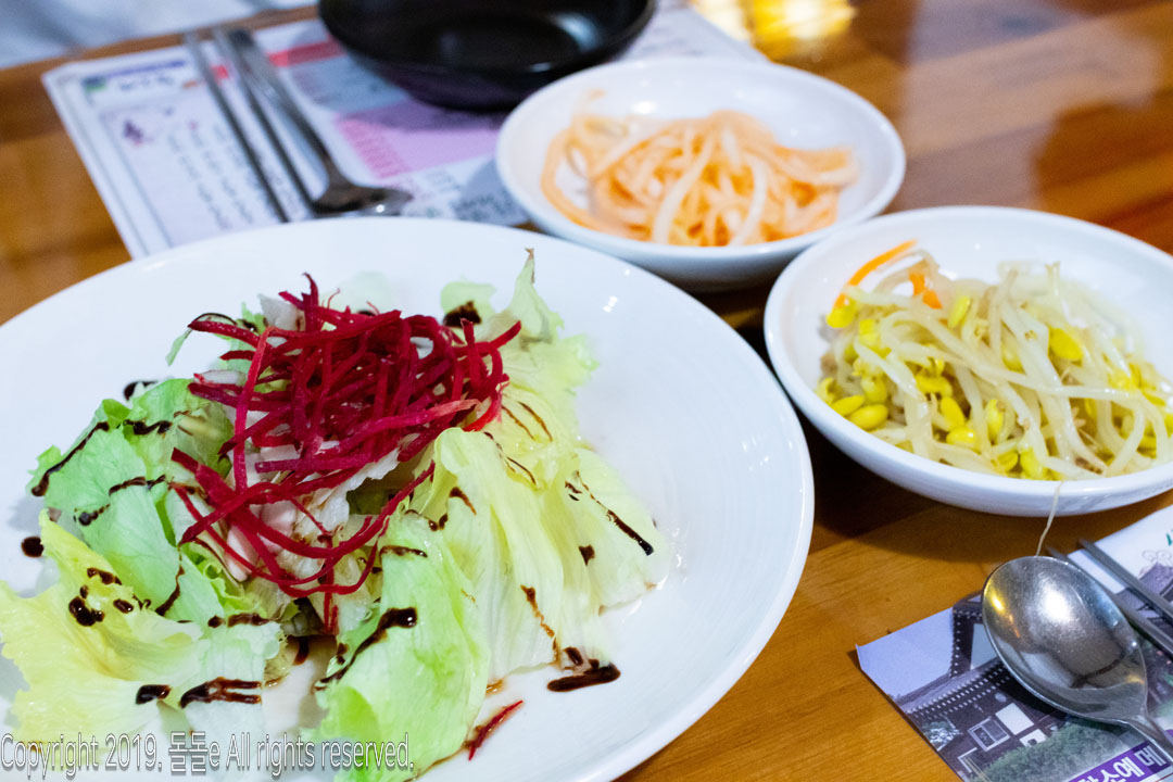 시흥 물왕저수지 근처 맛집 참소예에서 저는 쭈꾸미볶음 세트 1만3천원 메뉴 2인을 주문해서 먹었고, 샐러드와 콩나물, 무생채가 나옵니다.