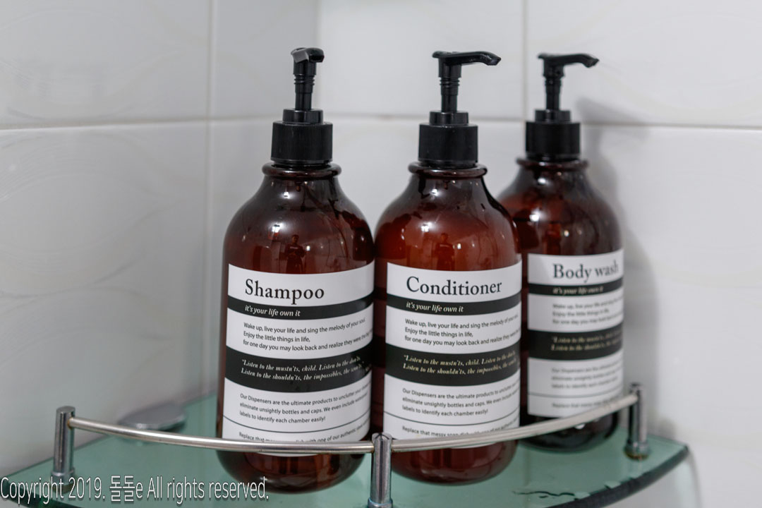 화장실에는 샴푸, 컨디셔너, 바디워시, 드라이기, 에프킬라가 준비되어 있기때문에 경주 여행을 오면서 따로 챙기지않으신 분들도 시원하게 샤워할 수 있습니다.