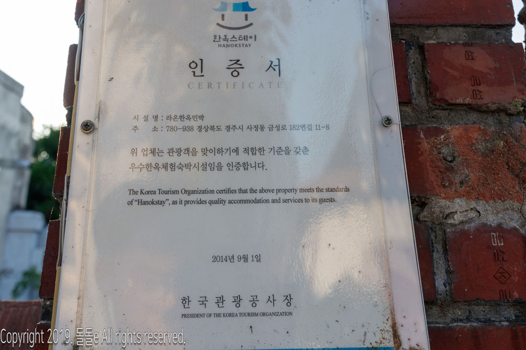 경주 숙박 싸고 좋은 곳 라온한온민박은 한국관공사의 관광객을 맞이하기에 적합한 기준을 갖춘 우수한옥체험숙박시설로 인증받은 곳으로 인증받지 않은 업체보다 믿고 투숙할 수 있습니다.
