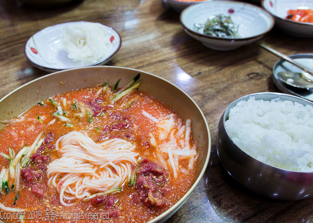 일반적인 물회처럼 한우물회에도 소면을 나오기에 넣어서 먹으면됩니다.