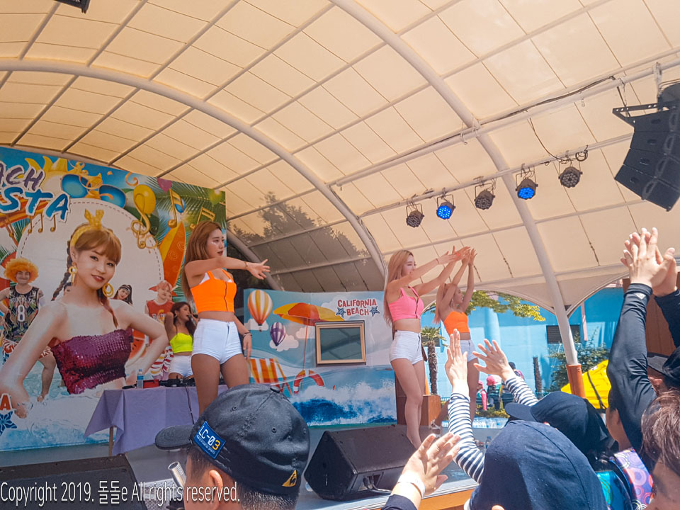 경주 워터파크에서는 다양한 공연을 하고 있는데요. 제가 방문한 날에는 신세대 트로트 스타, 캘리포니아비치 모델 한여름의 무대와 섹시디바 EDM댄스가수 플라이위드미, 워터팍흥 SHOW with 쇼단, 라이브쇼 리얼댄싱 K-POP의 무대를 볼 수 있었습니다.
