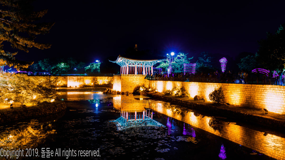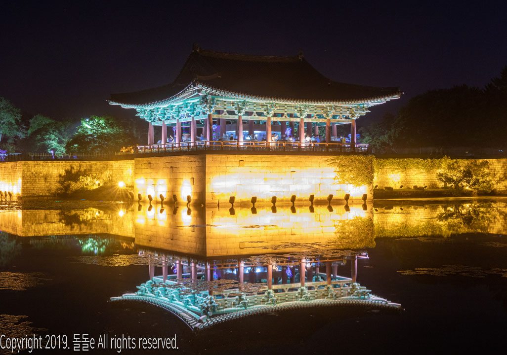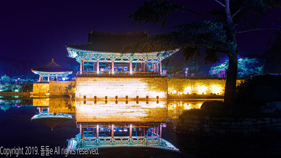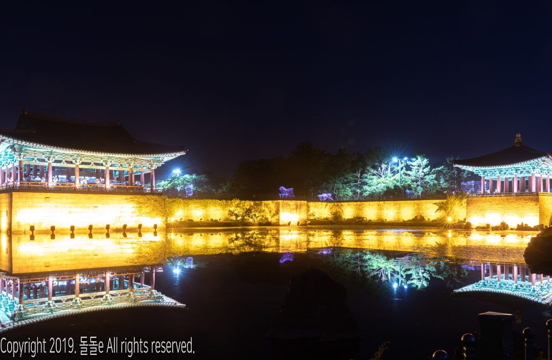 경주를 찾는 관광객들의 경주 필수관광코스가 된 동궁과 월지는 누각과 연못, 숲이 불빛으로 환상적인 경주 야경을 볼 수 있고 특히 연못에 반사된 전각과 나무로 dslr카메라, 미러리스 카메라 등을 이용해 아름다운 반영사진을 찍을 수 있습니다.