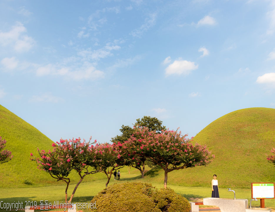 경주 필수 여행지 대릉원에는 원산지가 중국이고 관상용으로 좋으나 추위에 약하지만 꽃이 백일을 피어 목백일홍이라 불리기도 하는 배롱나무 꽃이 많이 심어져 있어 꽃 사진 촬영 혹은 커플, 가족, 친구와 예쁜 셀카 등 촬영을 할 수 있습니다.