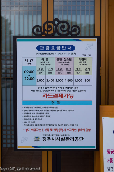 특히 대릉원에서 경주 야경 좋은곳으로 유명한 동궁과월지(구. 안압지) 입장료를 한번에 결제 가능하기때문에 대릉원 포토존을 찾아 방문하신 분들은 대릉원에서 한번에 입장권을 구입하시는 것이 아무쪼록 편하고 빠르게 경주 동궁과월지에 입장할 수 있습니다.