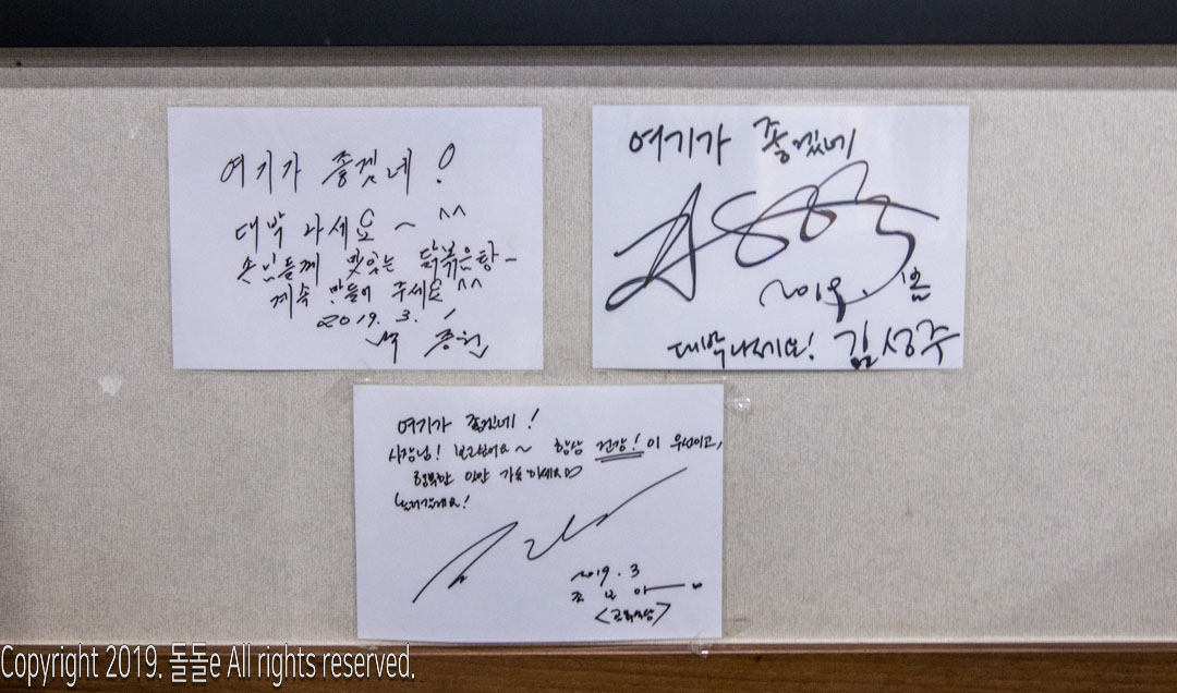 백종원의 골목식당 회기동편에 출연한 식당답게 백종원, 조보아, 김성주의 사인이 붙어있습니다.
