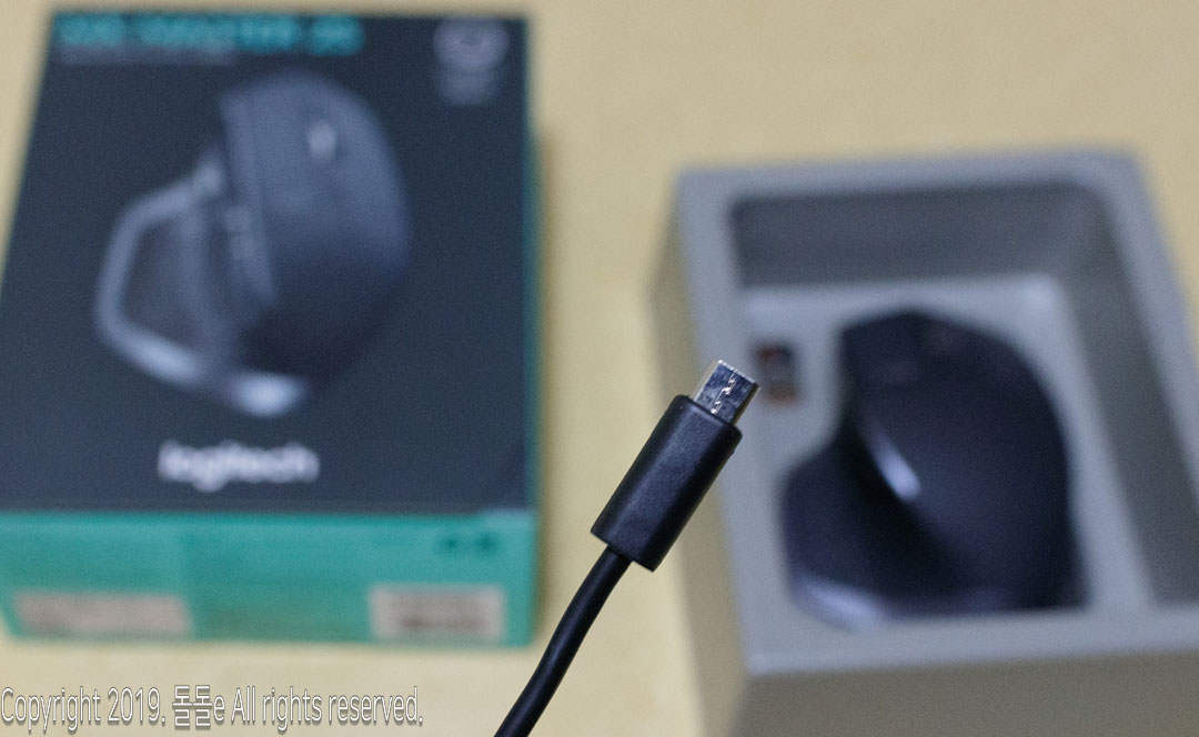 요즘 스마트폰, 갤럭시탭, 아이패드, 노트북 등 최신 IT기기에서 사용을 하지 않는 마이크로5핀 케이블을 이용해 충전을 하는 로지텍무선마우스입니다. 하지만 최근 발표된 mx master 3에서는 usb-c타입으로 변경이 되었다고 합니다.