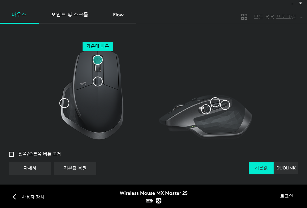 로지텍 프리미엄 마우스 mx master 2s는 anywhere2s와 달리 휠 클릭이 가능하기때문에 인터넷 검색 시 매우 편하며, 우측에 있는 썸 휠로 인해 좌/우 스크롤 이동이 가능하고, 앞으로가기/뒤로가기 버튼을 통해 키보드 없이 인터넷 서핑 등을 매우 편하게 할 수 있고, 엄지손가락이 올라가는 부분은 제스처 기능이 가능하며, 모든 기본 기능들은 로지텍 옵션 프로그램을 통해 개인에게 맞게 재 설정 가능합니다.
