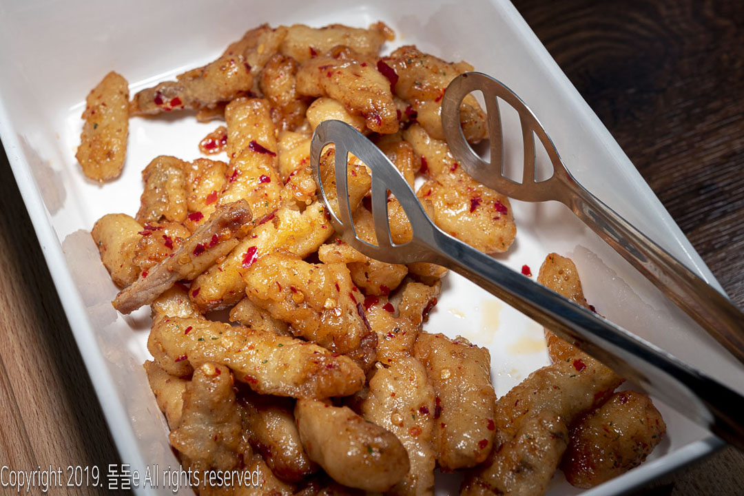 미스터피자 샐러드바, 피자 뿐만 아니라 만두탕수, 감자튀김, 탕수육, 김말지 총 4종의 메뉴도 준비되어 있습니다.