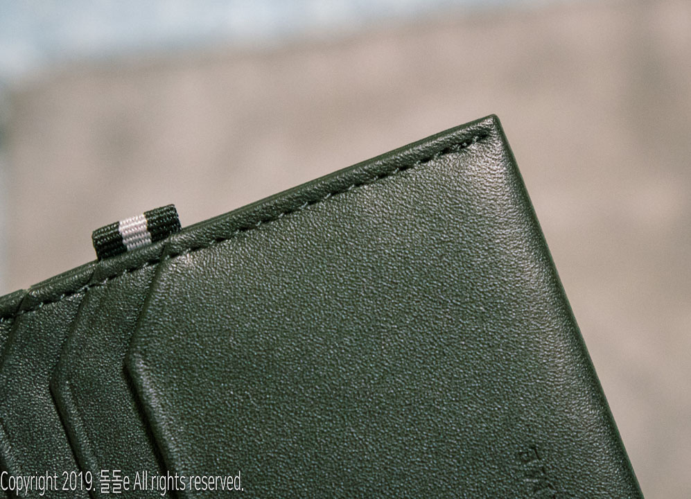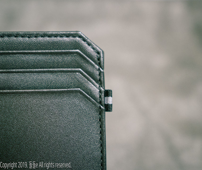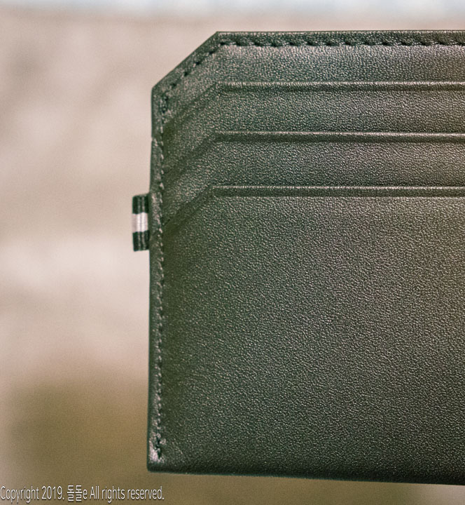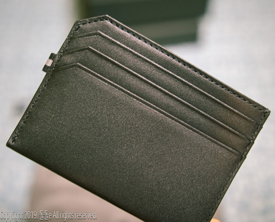또한 꼼꼼하고 빠짐없는 박음질 덕분에 튼튼하고, 지갑에는 브랜드로고 각인이 되어 있으며, 옆에 달린 리본으로 인해 카드지갑의 심심함을 달랬으나, 왠지 모르게 b사 느낌이 들기도 합니다.