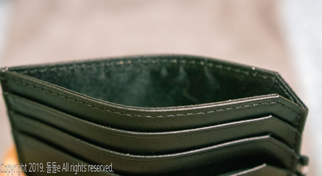 슬림한 디자인을 가지고 있는 카드지갑 답게 카드 6장을 넣어도 그렇게 부피가 커지지 않고, 카드 포켓 깊이도 깊어 카드 분실 등 걱정을 하지 않아도 됩니다.