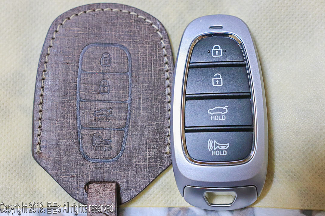 많은 최신 옵션을 적용해 신차급 변화로 그랜저ig 출시 3년만에 선보인 그랜저 페이스리프트, 더뉴그랜저 2.5, 3.3, 하이브리드 중 더뉴그랜저하이브리드를 11월 4일 사전계약 첫째날 계약 후 7주만에 차량을 인도받았고, 스마트키 사용을 함에 있어 사무실, 집 등 여러 키를 차키에 연결해 사용을 해야했기에 키홀더가 필요하다보니, 고급스러우면서 그립감 좋고 거기에 가격까지 적당한 제품이 없을까 고민하다 이탈리아 천연 가죽 사용과 더불어 핸드메이드 제품인 브로그앤머로우의 스마트키 케이스를 케이스에 장착했습니다.