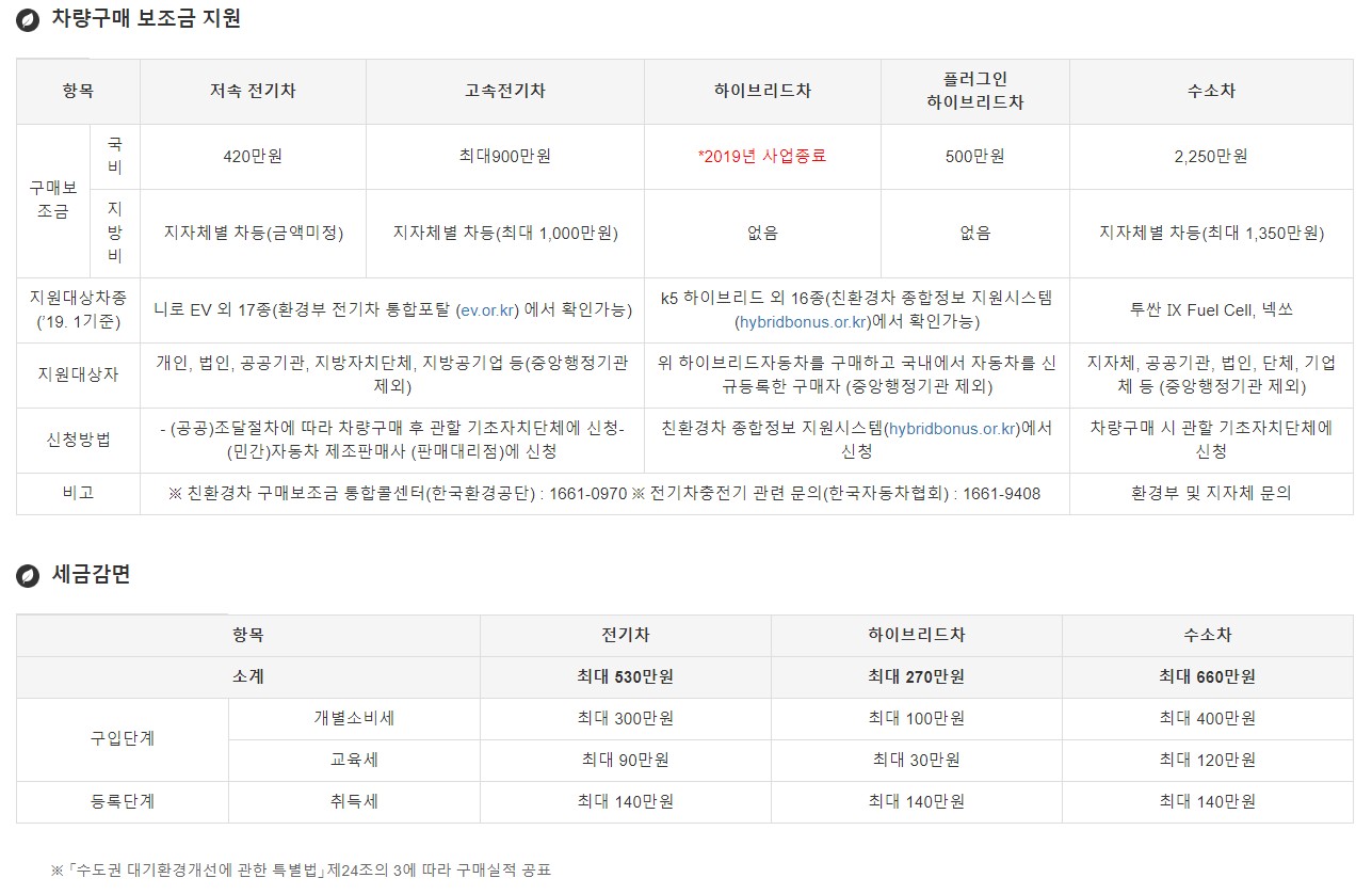 먼저 2015년1월1일부터 2018년12월31일까지 출고된 차량이면서, 이산화탄소 배출량이 97g/km 이하인 중형차 1600cc이상 2000cc 미만, 소형 1600cc미만 일반 하이브리드차량에 지급되던 하이브리드 보조금은 2019년 1월부터 종료된 점은 조금 아쉽습니다.