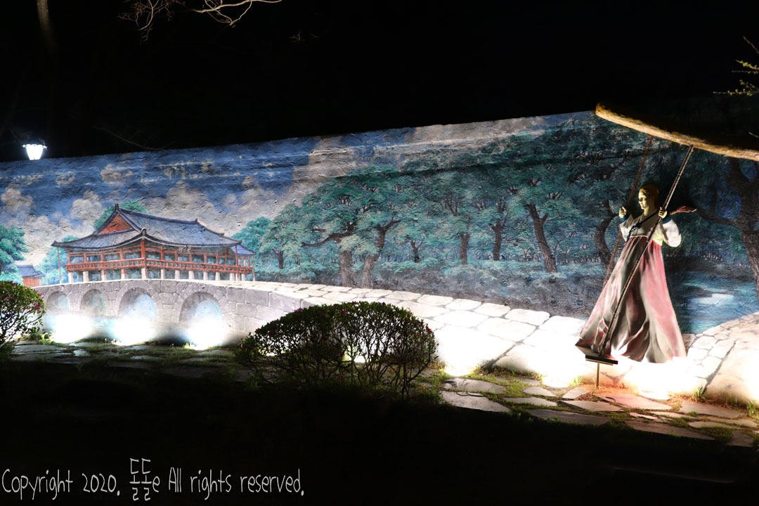 남원 가볼만한곳 춘향테마파크 야경이며, 포졸, 그네타는 춘향이, 과거 합격한 이도령 동상 등 많은 볼거리가 있으며, 사극 드라마에서 보던 곤장 등 여러 형벌, 고문을 체험해볼 수 있습니다.