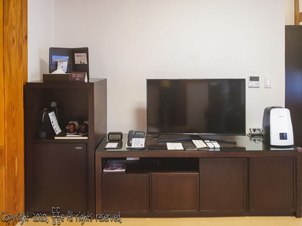 제가 이용했던 호텔 객실은 2명 스탠다드 이며, 두명이 잠자고 푹 쉬기에 부족함 없었고, 오랜 침대 생활을 해온 저이지만 푹신한 이불 그리고 장작을 이용한 온돌의 따뜻한 방바닥 온기로 인해 허리가 배기지도 않고 따뜻하게 잘 수 있었습니다