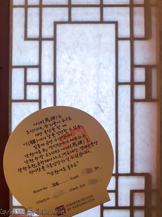 일반 한옥민박이 아닌 남원한옥호텔 남원예촌은 보안까지 신경을 쓴 흔적을 볼 수 있었습니다. 체크인할때 받은 카드키를 문 옆에 있는곳에 갖다대야 문이 열리며, 문 앞에는 개인이 비밀번호를 설정해서 사용 가능한 신발장까지 구비되어 있기에 신발 도난 사고를 미리 대비할 수 있습니다.