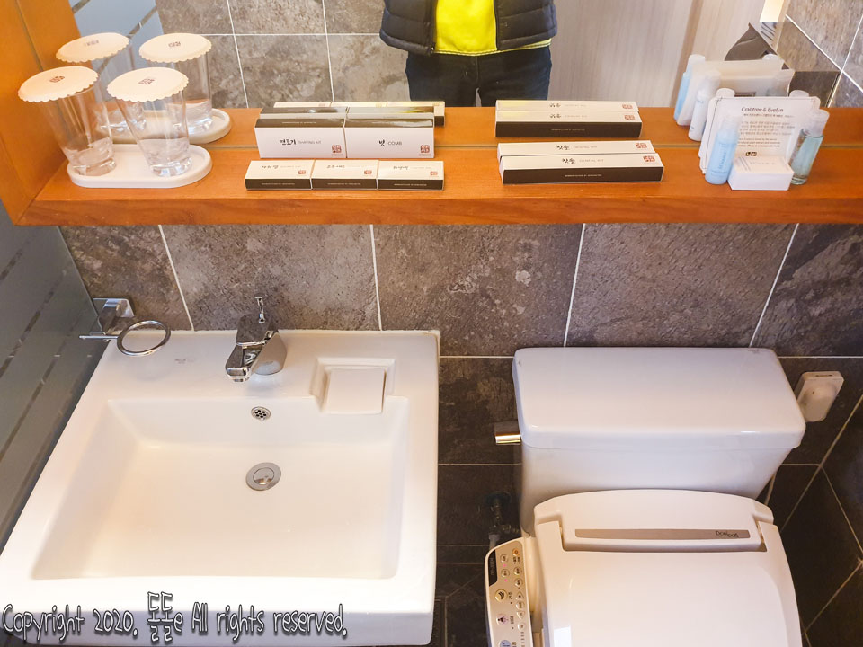 화장실에는 비데, 호텔 어메니티가 있으며, 따뜻한 물 잘 나오고, 수압도 강하기때문에 씻는데 전혀 불편함이 없습니다.
