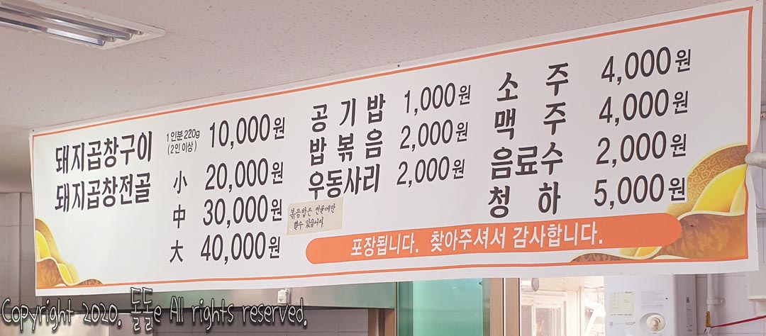 요즘 곱창 가격 참 비싸지만, 백종원골목식당에 출연했던 서산 해미우시장 돼지 곱창구이 가격은 1인분 1만원, 곱창전골 2만원부터 4만원의 합리적이고, 저렴한 음식 가격으로 판매하고 있어서, 곱창을 좋아하시는 분들도 부담 없이 양껏 먹을 수 있습니다.