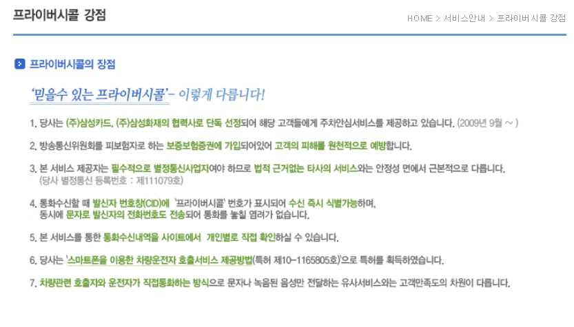 개인정보 유출 없이 안전한 주차, 정차에 도움을 주는 주차안심번호 서비스를 제공하는 프라이버시콜은 삼성카드 카앤모아, BC세이프드라이빙 등 여러 제휴서비스를 이용하시는 분들도 무료로 이용 가능합니다.