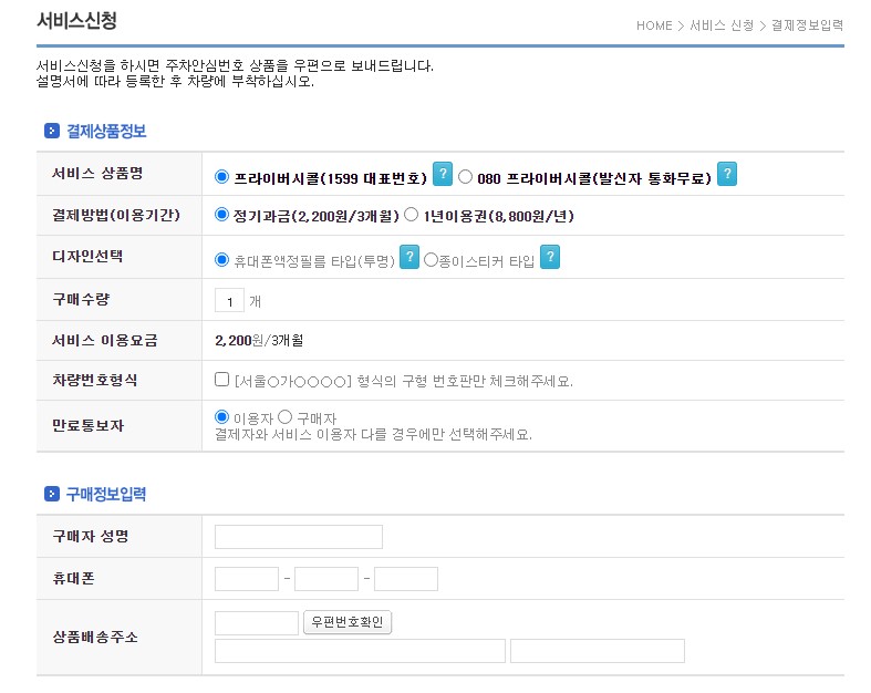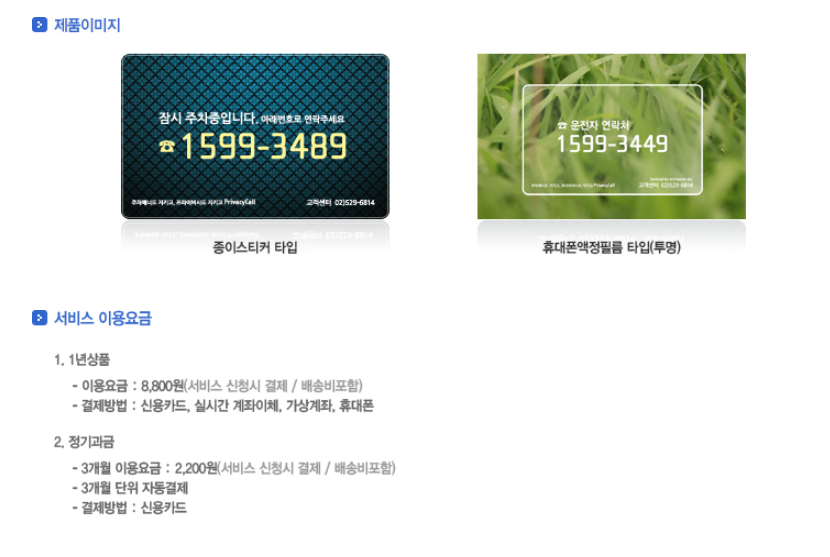 휴대전화번호 노출 등 개인정보를 안전하게 보호하는데 도움을 주는 주차안심번호 서비스 프라이버시콜은 종이스티커, 휴대폰액정필름(투명) 두가지 종류가 있기때문에 기호에 맞게 신청 가능합니다