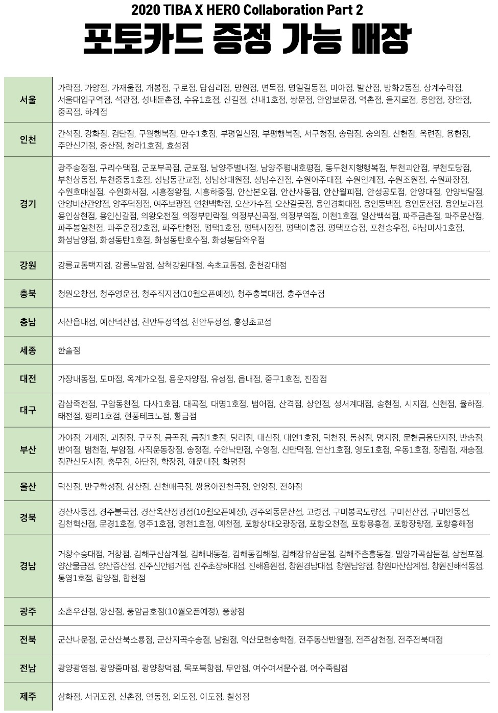 단, 임영웅 포토카드 증정 매장은 위 매장만 가능합니다.