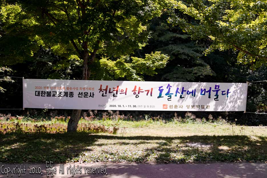 2020년 10월 1일 ~ 11월 30일까지 2020 전통 산사문화재 활용사업 특별기획전 천년의 향기 도솔산에 머물다라는 사찰 행사를 진행하며, 매주 월요일, 화요일 휴관입니다.