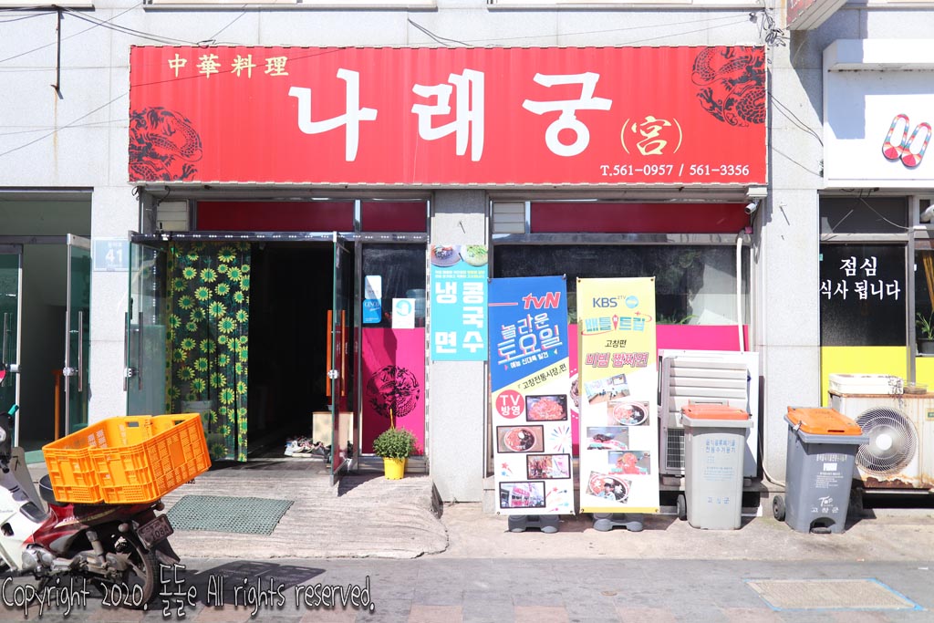고창 짬짜면으로 유명한 나래궁은 tvn 놀라운토요일 고창전통시장편, kbs2tv 배틀트립에 비빔짬짜면으로 소개된 곳이며, 점심시간을 지나서 갔는데도 불구하고 많은 젊은이들과 고창 현지인들이 늦은 점심식사를 하기 위해 많은 대기 인원이 있었다.