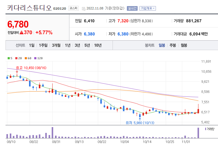 11월 7일 네이버가 네이버웹툰의 미국 상장을 언급하며, 네이버 웹툰 관련 종목들이 급등을 했고, 엔비티는 상한가 마감했습니다. 최수연 네이버 대표는 네이버 3분기 실적발표 컨퍼런스콜에서