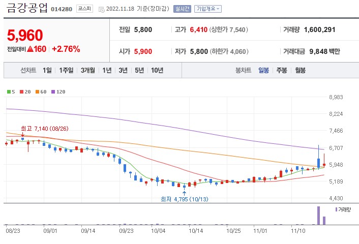 2. 금강공업 +2.76% 5960원