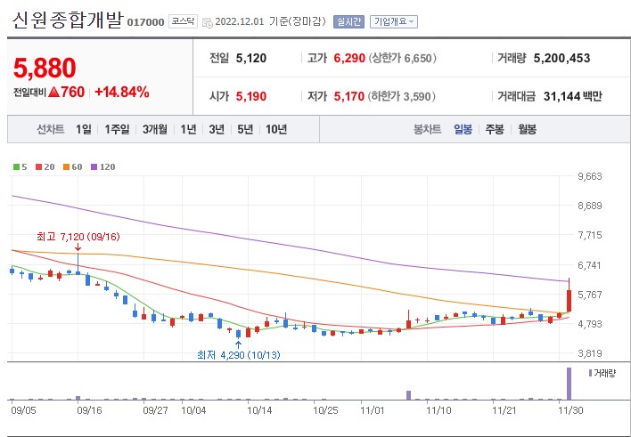 건설관련주 신원종합개발 주가는 14.84% 상승한 5880원에 거래를 마쳤으며, 신원종합개발은 관토목공사 및 수익성 있는 민간사업의 수주에 적극적으로 참여하고 있습니다.