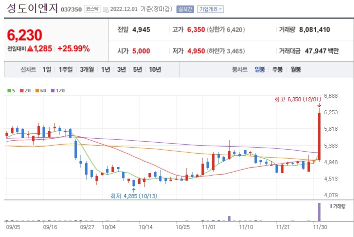 성도이엔지 주가는 25.99% 상승한 6230원에 장을 마쳤습니다.