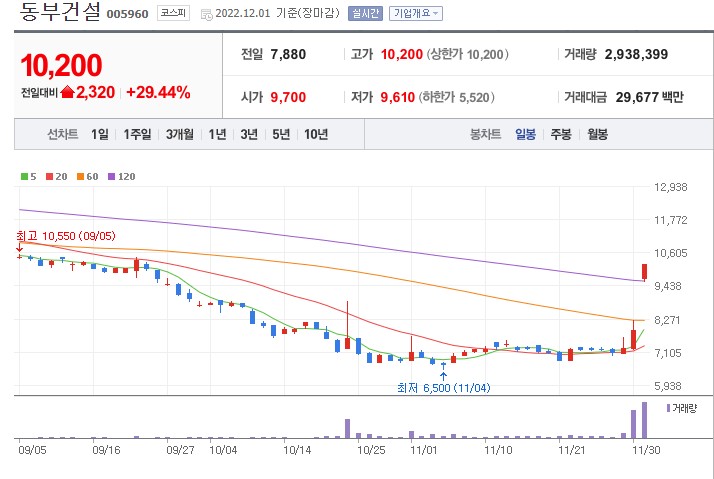 12월 1일 국내 중소형 건설업체 동부건설, 서한 상한가 마감을 했습니다. 그렇다면 건설 관련주 동부건설 주가, 서한 주가 상승 이유가 무엇인지 그리고 건설 관련주에는 무엇이 있는지 한번 알아보겠습니다.